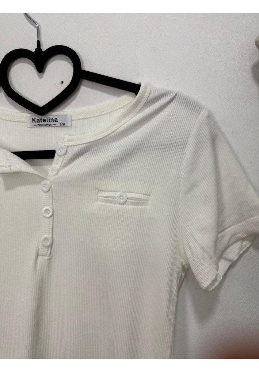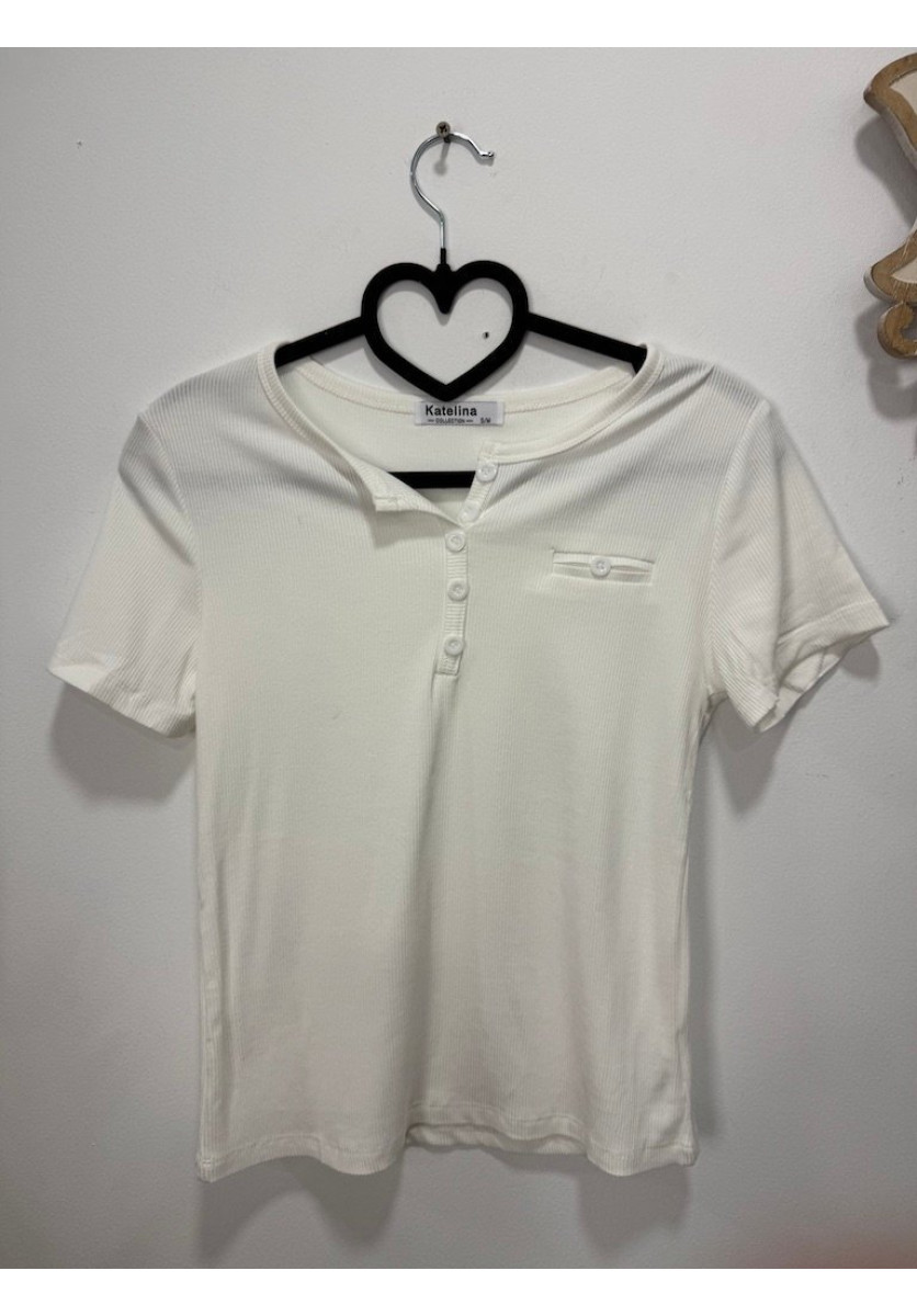 CAMISETA CANALÉ EN TONO TEJA CON MANGA CORTA Y ESCOTE REDONDO CON BOTONES FRONTALES QUE APORTAN UN TOQUE CASUAL Y ACTUAL TEJIDO ELÁSTICO Y CÓMODO QUE SE ADAPTA A LA SILUETA PERFECTA PARA CREAR LOOKS BÁSICOS CON ESTILO Y PERSONALIDAD.