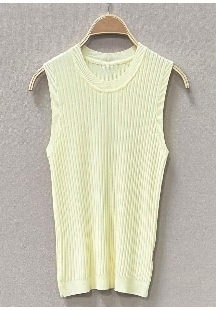 \nSU DISEÑO SIN MANGAS Y CUELLO REDONDO APORTA UN ESTILO MINIMALISTA Y MODERNO, PERFECTO PARA COMBINAR TANTO EN LOOKS CASUALES COMO MÁS SOFISTICADOS. EL DELICADO TONO VERDE MENTA AÑADE UN TOQUE FRESCO Y LUMINOSO, IDEAL PARA PRIMAVERA Y VERANO.